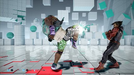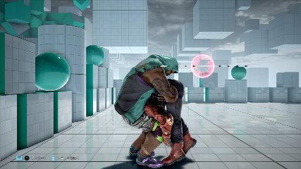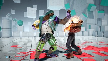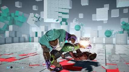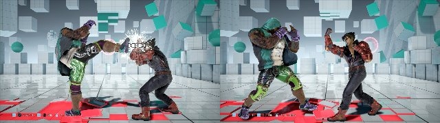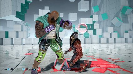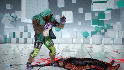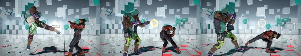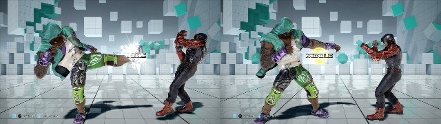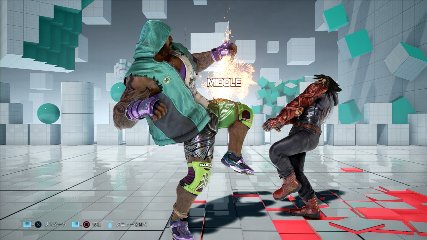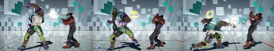 /連係)後は、反時計回り横移動で起き上がり中段攻撃を回避可。牽制キックは動かない、または反時計回り横移動で回避可。起き上がり下段攻撃は下段捌きが最大反撃。