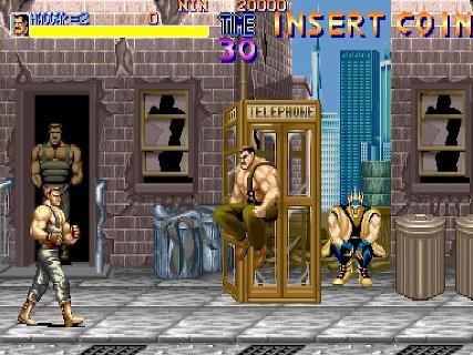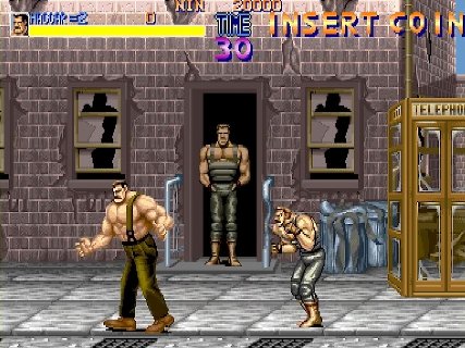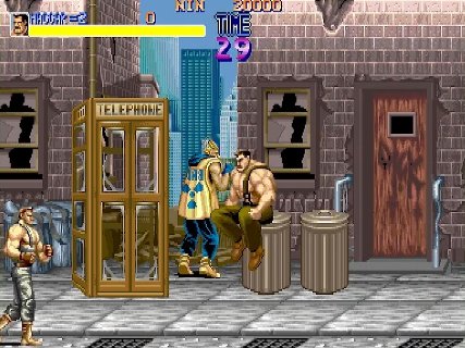 画面左側からは、頭突き体当たり攻撃が強力なG・オリバー、画面右からは同じく頭突き体当たりを使うブル・ビルと、Jのコンパチのツー・ピーが登場。少し遅れて画面左からJが登場する。