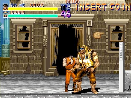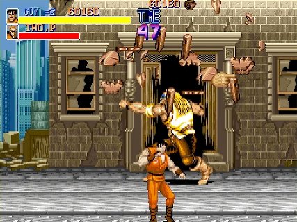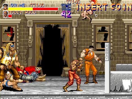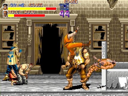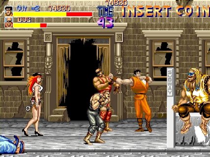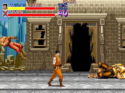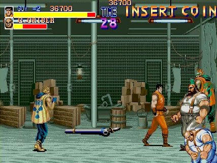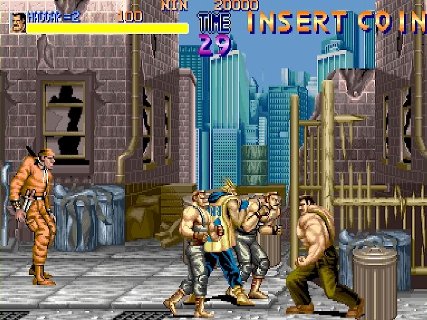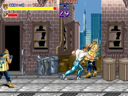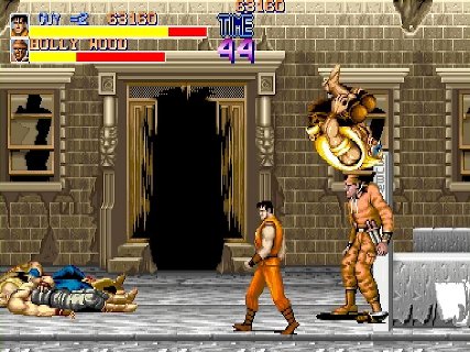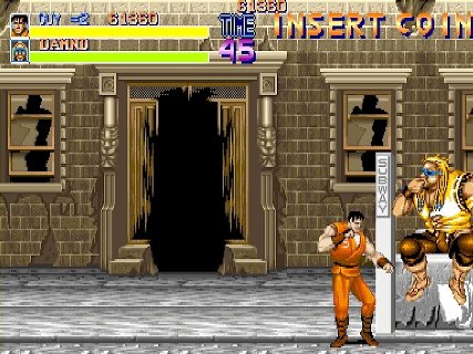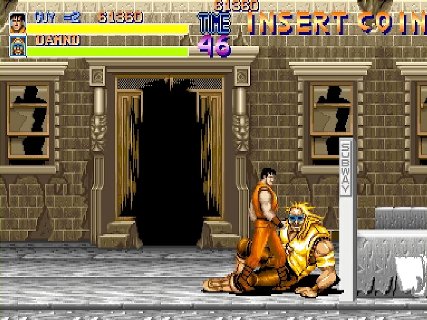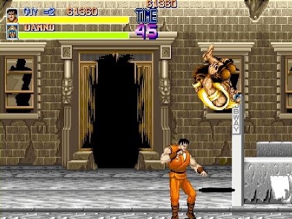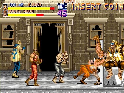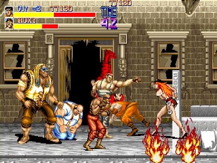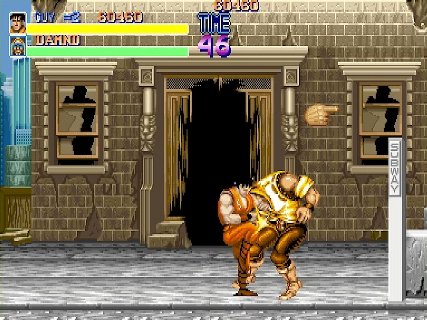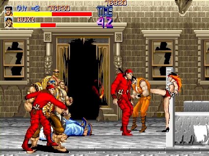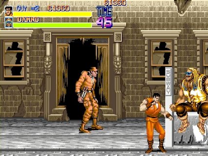 ダムドにダメージを与えると、再び範囲外に退避して増援を呼ぶ。今度の増援は、建物からブレッドとダグ、左画面外からG・オリバーとニューハーフのロキシー。