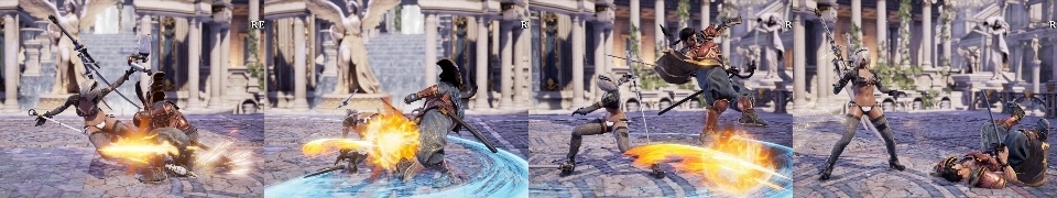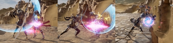 Kホールド(ダメージ合計57点)がおすすめ。気絶値+2にくわえて側面やられや背面やられになりやすく、さらに追撃した場合、投げが側面投げや背面投げになる。マキシ、タリム、吉光等の右構えキャラは正面向きになりやすいので注意。また、ヴォルドは投げ間合いにならない。