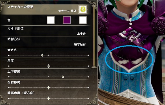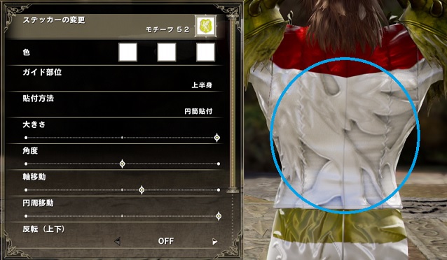 【上半身】レザーシャツ ヨーロピアアン18(15,36,9/20,36,6/31,0,4 大きさ 左から8)/ベーシック5(31,0,4/31,0,4/2,55,9/31,0,4 大きさ:最大、角度:4/6くらいで水平線になるように調整)
