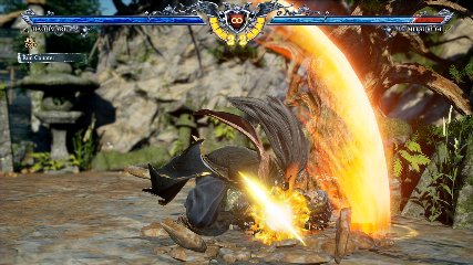 中段択に関しては、ノーゲージでダメージ70の斬鉄閃(B+K/中)があるため、あえてCEを使うメリットはない。どちらかといえば崩しの切り札として考えよう。特にコマンド投げからの火力は優秀。