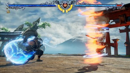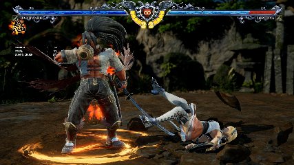 B+K)。前後受身なら左右RUNで回避可能(キャラによって体格でひっかかる)。前受身なら発生12Fで割り込み可能。また、どの受身でもレジストインパクトで防ぐことができる。覇王炎遥斬はダウンにヒットしないので、ダウン維持でも回避可能。