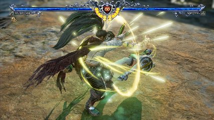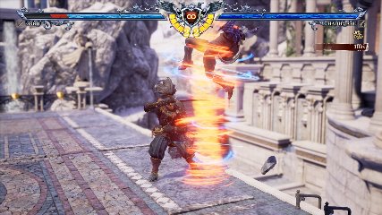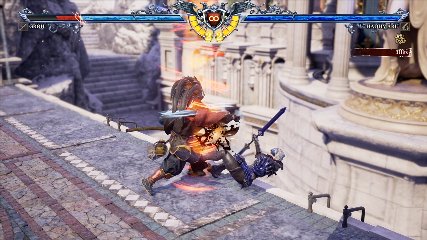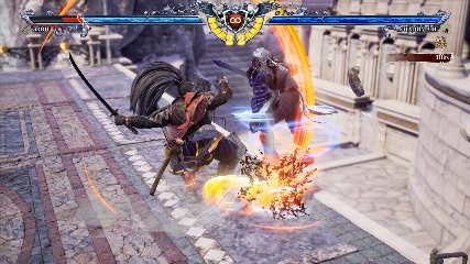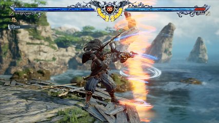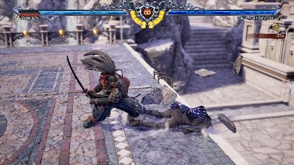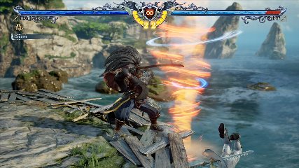 B+K/中段ガード不能)ヒットで相手を遠くまで吹き飛ばした後は、重なる追撃技がない。とりあえず旋風裂斬(