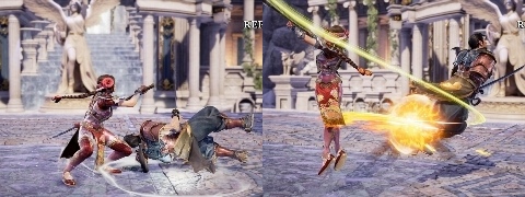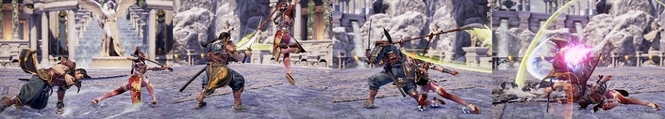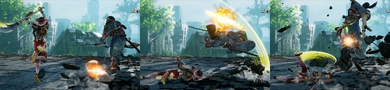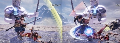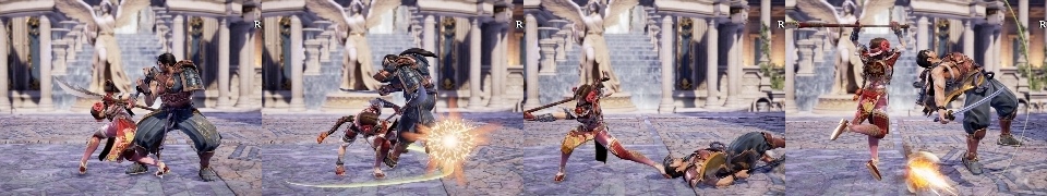 時計移動(左)で回避した場合、3段目に引っかかることがあるので注意。また、モーションが低姿勢のため潜られることもある。事前に反撃技を検証しておこう。