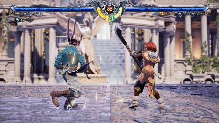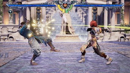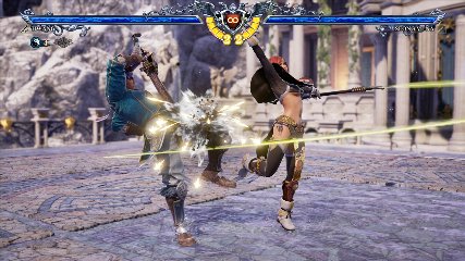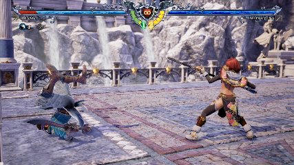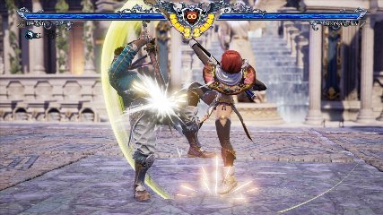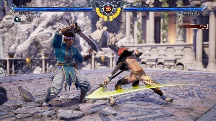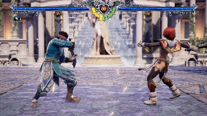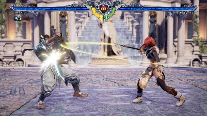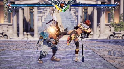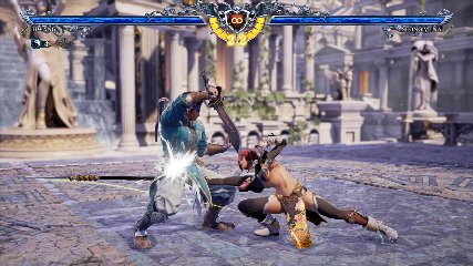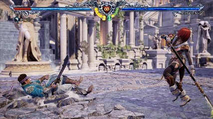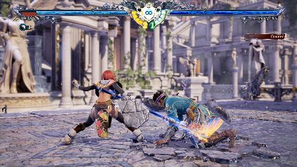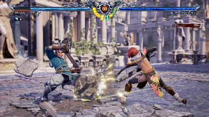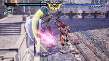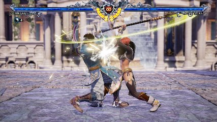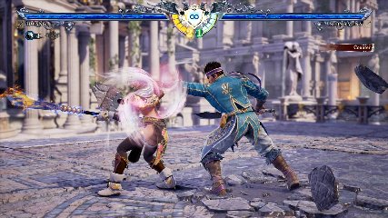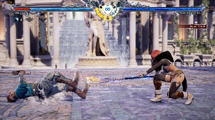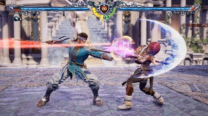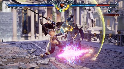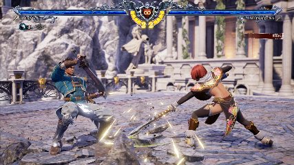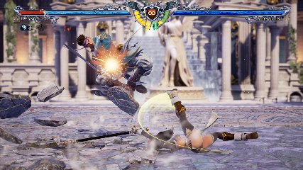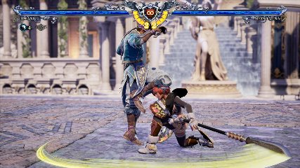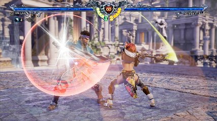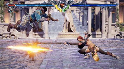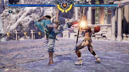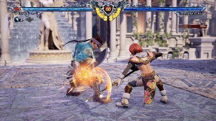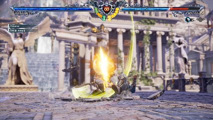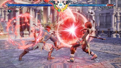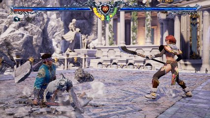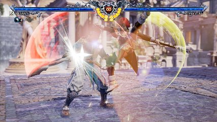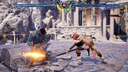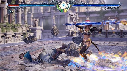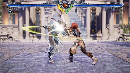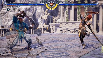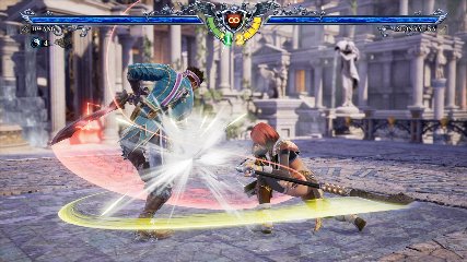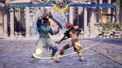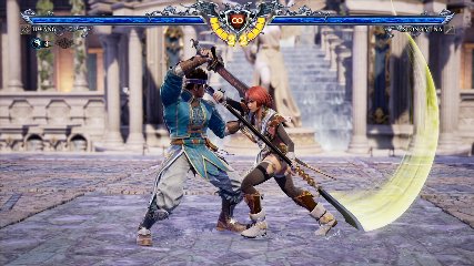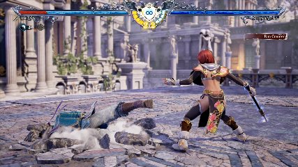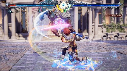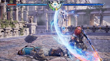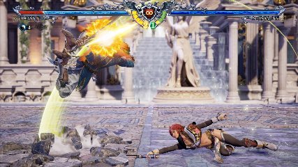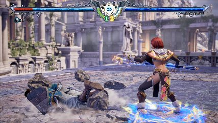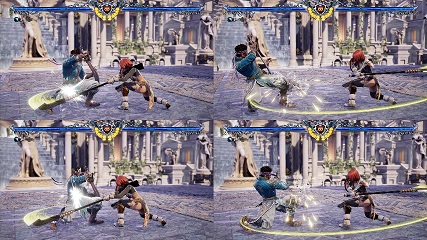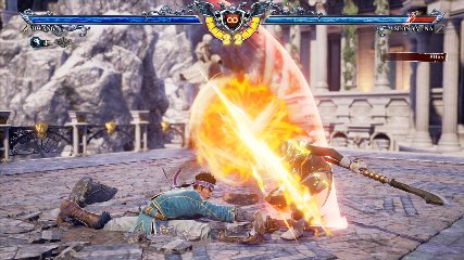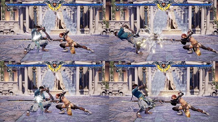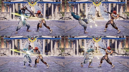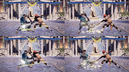 リバーサルエッジの場合はGIに比べて反応がきびしくなるが、間に合えば下段択にヒットさせることができる。中段は捌いてもガードされるが、削りダメージ&ソウルゲージ増加で一応プラス収支になる。