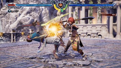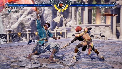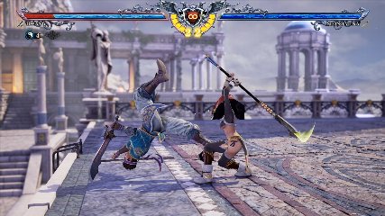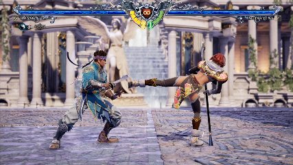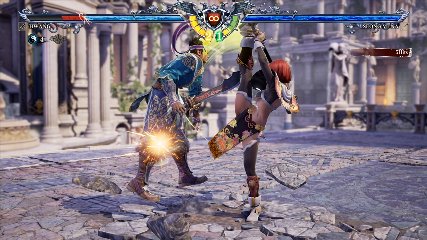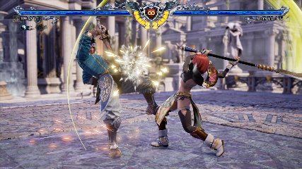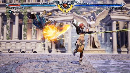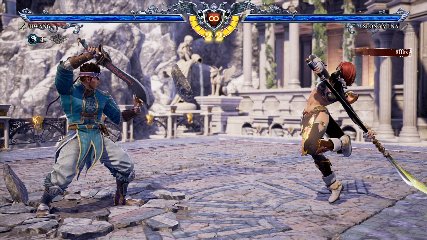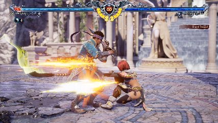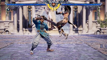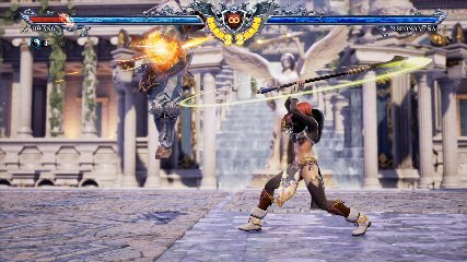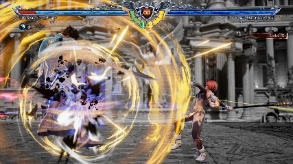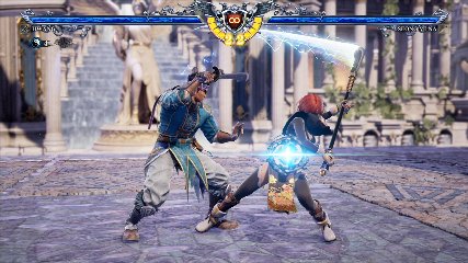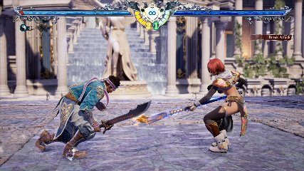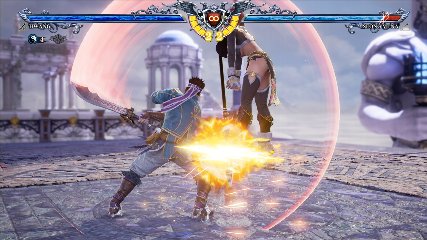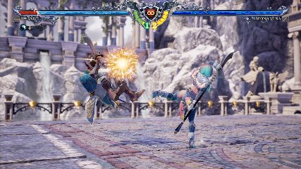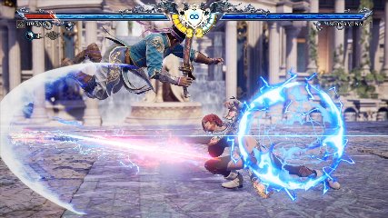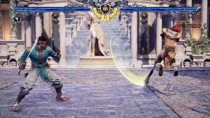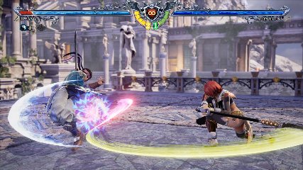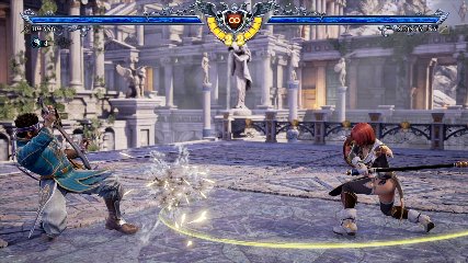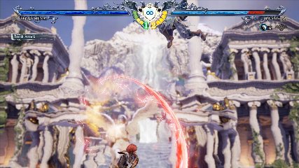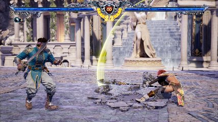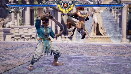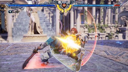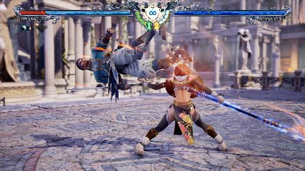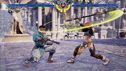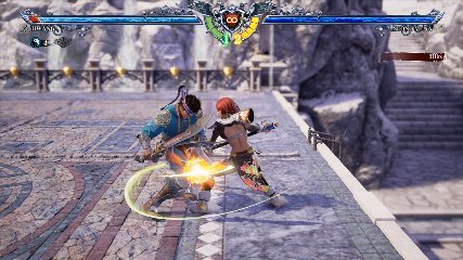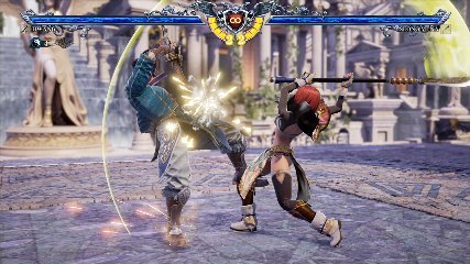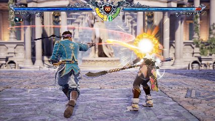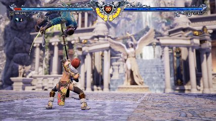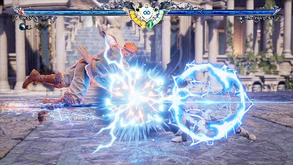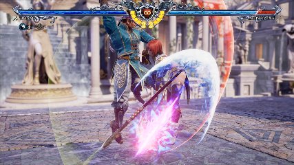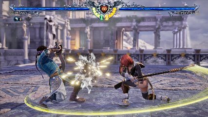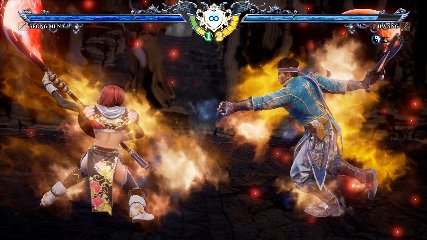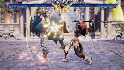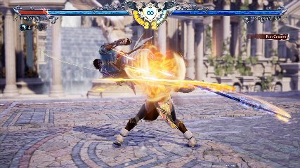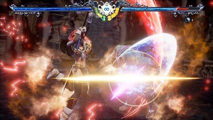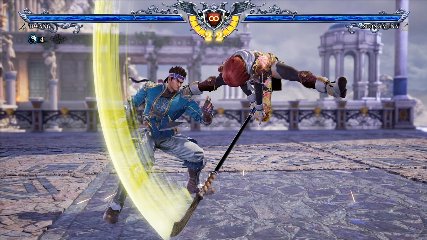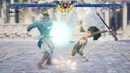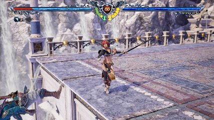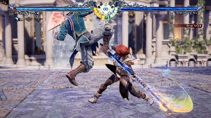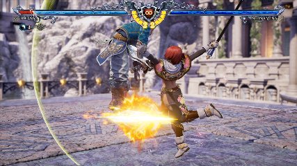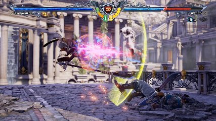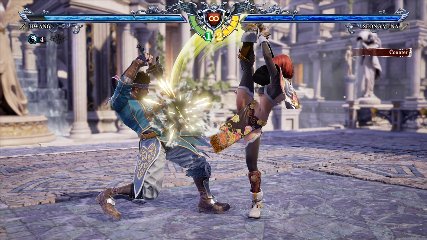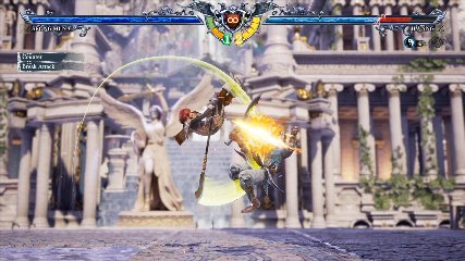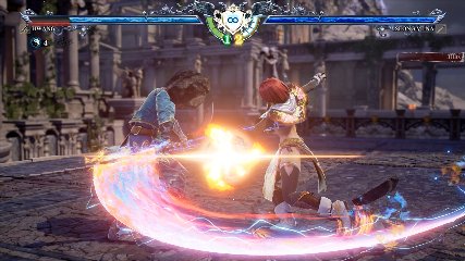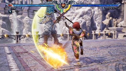 ソウルチャージ中の二択には、ジャンプステータス技による暴れが対策のひとつになる。下段択を飛び越えるのは当然だが、中段択の成式連牙天風儀は1段目のみヒットして、2段目以降はミナが突進で通り過ぎて空振りにできる。