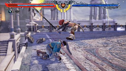潜翔撃(ジャンプB/中)と迅掃撃(ジャンプA/下)の二択が地味に強力。発生こそ遅いものの、目を奪われがちな斬撃モーション部分が早く、そこだけで見極めようとすると実は不可能。発生はどちらも36Fでファジー対応もできない。