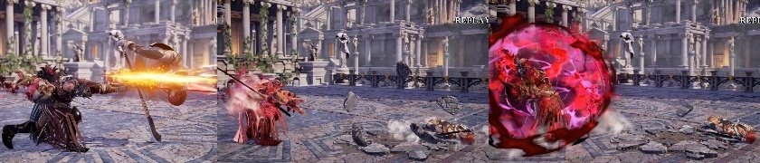 A+B/中)には、発生10Fからダメージ20以下の相手攻撃を受けると、そのダメージを半減する『リベンジ』という特殊効果を持っている。また、リベンジ発動からテラーアヴェンジに派生し、連続攻撃ならガードインパクトで弾いて、最終的にソウルバーンと似たモーションの攻撃で反撃を行う。