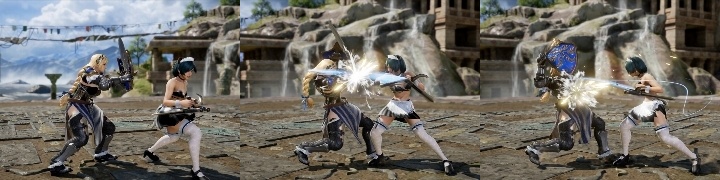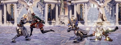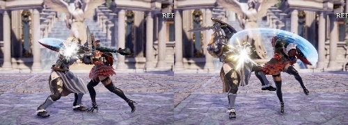 SC中BKAAは中→上→下下→下という構成。他に派生はないので下段をしっかりガードする。ガード後-16Fなので、エンスト、CEが確定する。時間も稼げるので確定は必ず入れたい。