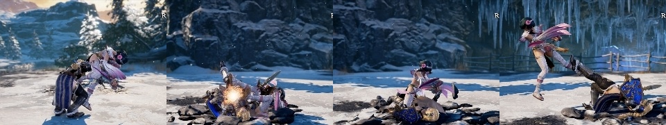 BB(中中):しゃがみからアッパー2段。カウンターでつながる。出し切りから各種構え派生可。姿勢低い。