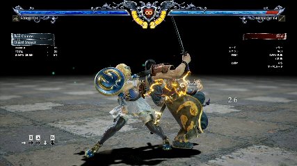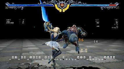 1P側に自キャラクター、2P側に技を受ける練習台となるキャラクターを選ぶ。キャラクターの体格によって若干の当たり判定の違いがあるが、練習台には標準的な体型であるミツルギやソフィーティアあたりを選ぼう。アスタロスのような他キャラと比べて極端に体格が異なるキャラでなければ、基本どのキャラでもいい。逆に、エイミやタリムなどの小型キャラを相手に選べば、体格に左右されないコンボが判明する(小型キャラに成立するコンボは、大抵どの体格にも有効)。