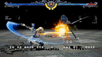 設定が終わったら、手始めに設定メニューの『トレーニング設定』 > 『技表を開く』 > 『主力技』のページを表示し、一覧の下の方にあるサンプルコンボに挑戦しよう。