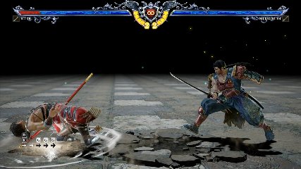 受身ができない場合も、Gボタンでその場立ちを行う以外に、方向コマンドで前・後転や横転が選択できる。ただしシステム上、後転・横転はあまり移動距離がなく、相手の攻撃を避けづらい点に注意しよう。後転したのに起き攻めの投げが届いたり、横転したのに起き攻めの縦斬りがヒットしたりと、期待外れの結果になることが多い。