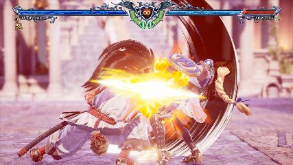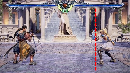 なので、相手が二択と身構えるような状況では横斬りは出さないようするのが望ましい。具体的には、相手に前ダッシュを見せて横斬りを出してはいけない。ダッシュを見て相手がプレッシャーに身構えるなら、ちゃんと縦斬りと崩し技で二択を仕掛けた方が効率がいい。