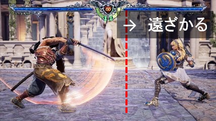 距離戦において横斬り攻撃は、相手のサイドランをつぶすために使用するが、相手が二択に対して身構えている状況に対して出してしまった場合、上段なら択にならず、中段ならせっかく中段をヒットさせたとしてもローリターンで終わってしまう。