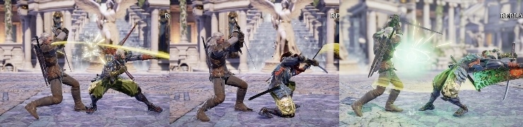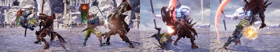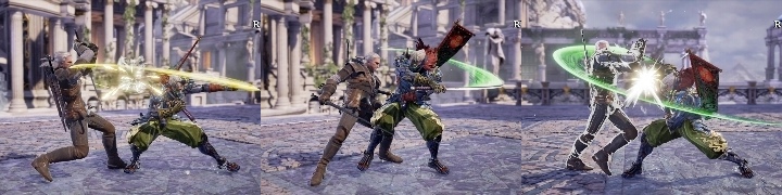 2段目以降に対してリバーサルエッジで両対応した場合、縦斬りに対して捌き後の攻撃は確定しない(ガードからリバーサルエッジの駆け引きは成立する)ので、リターンが小さい。横斬りにいたっては最速クラスのリバーサルエッジでも回避されてしまうので、むしろ悪手。