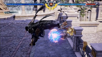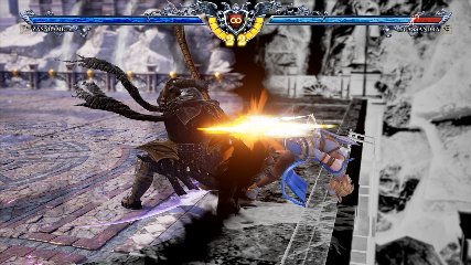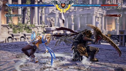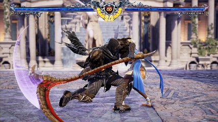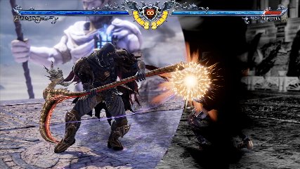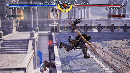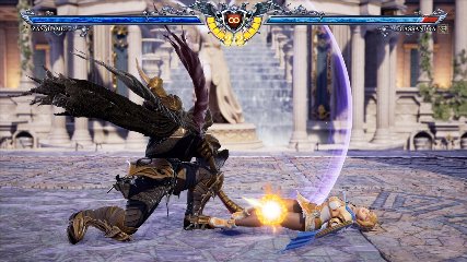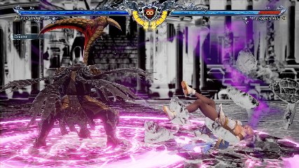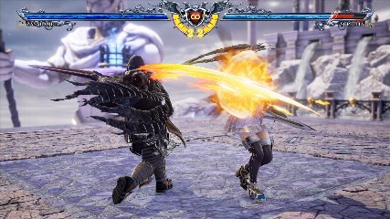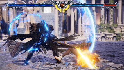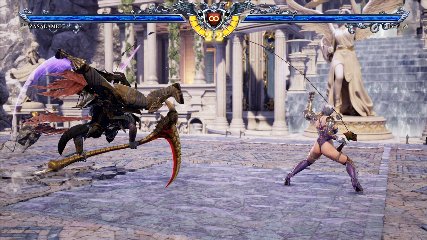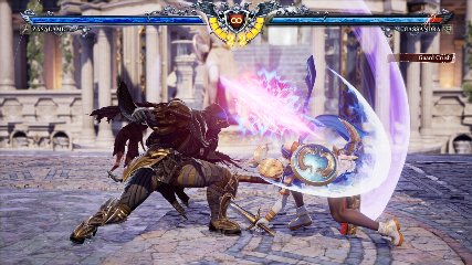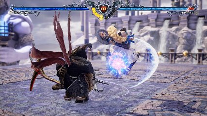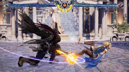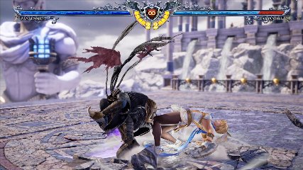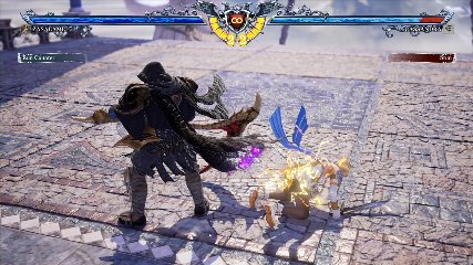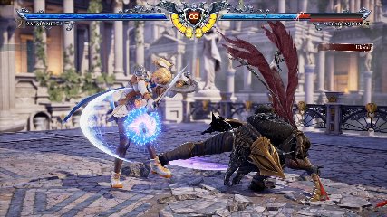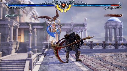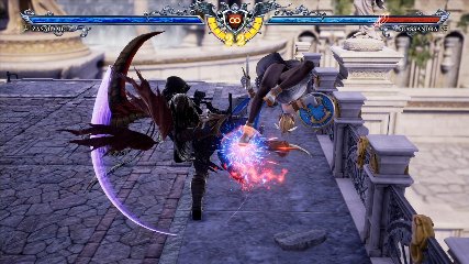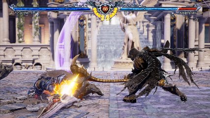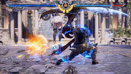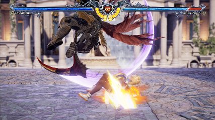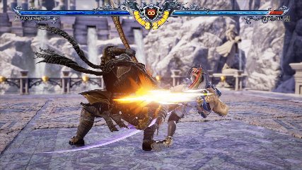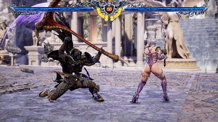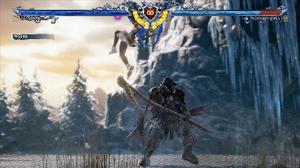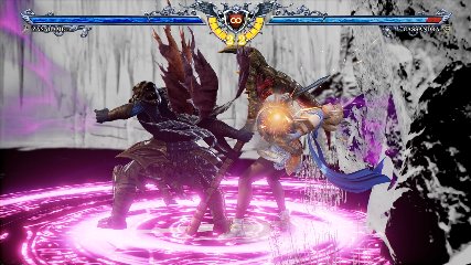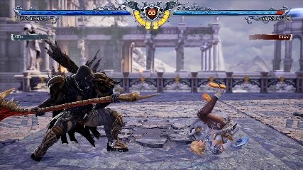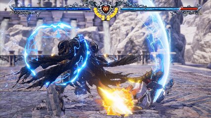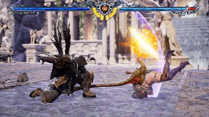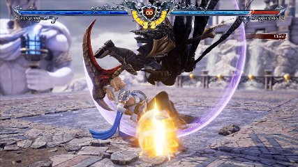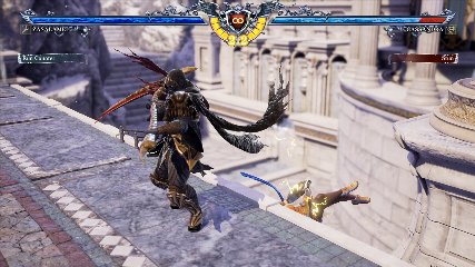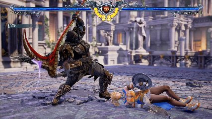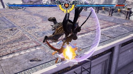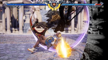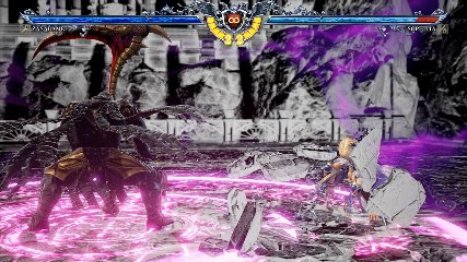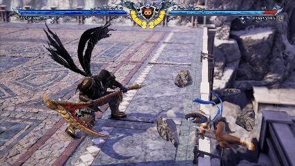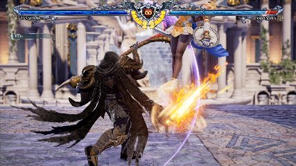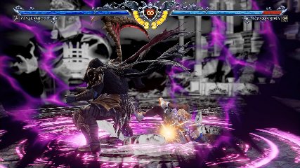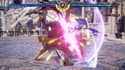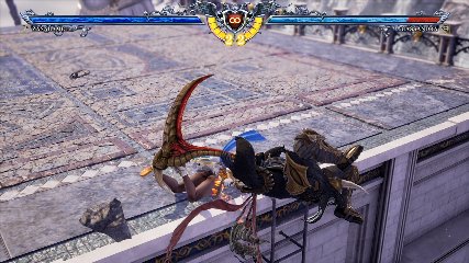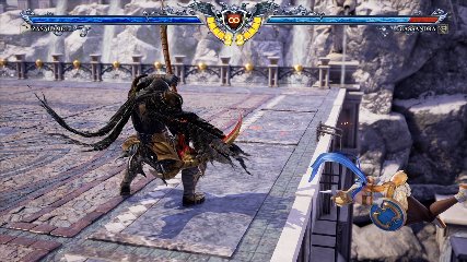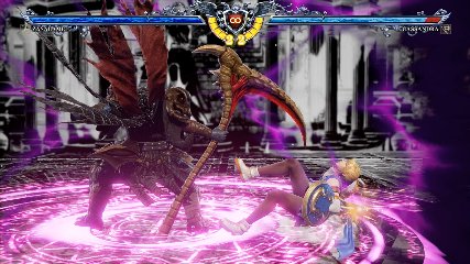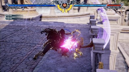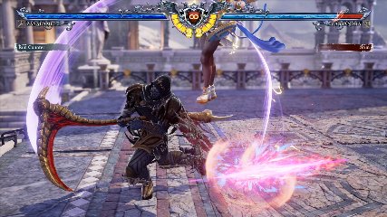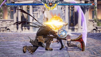 ちなみに背の高い相手キャラ限定で、背向けK > 背向けBBの高ダメージレシピが可能。ただししゃがみヒットに対しても成立するキャラはアスタロス、ナイトメア、ヴォルド(正面)、ザサラメールとかなり限られているため汎用性は低い。