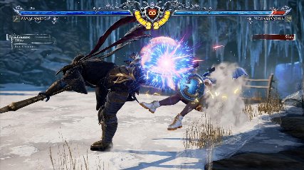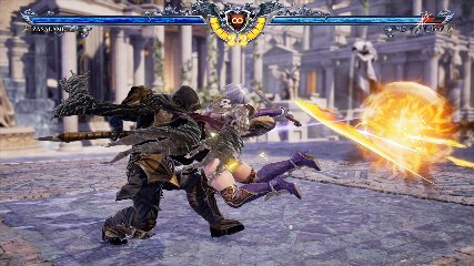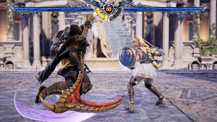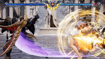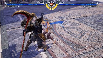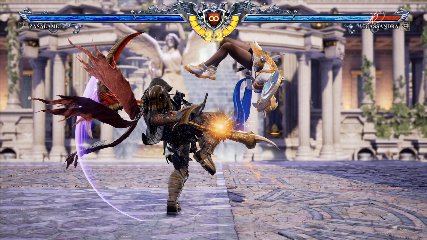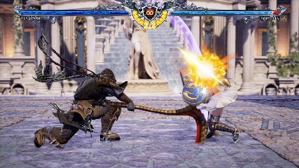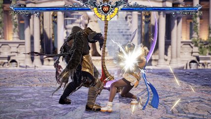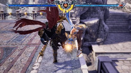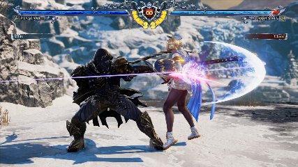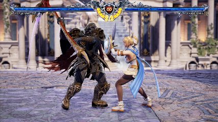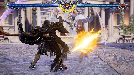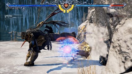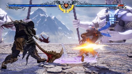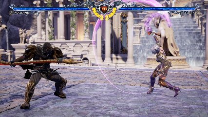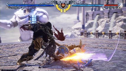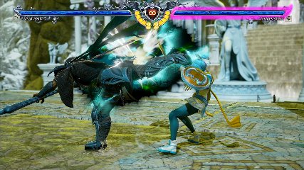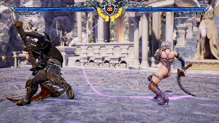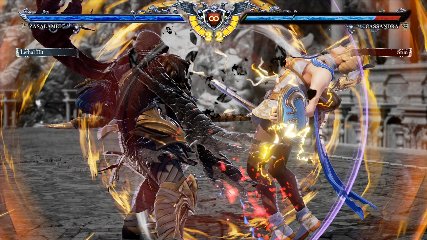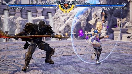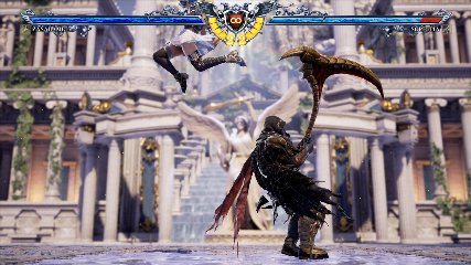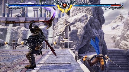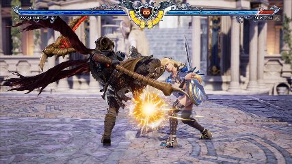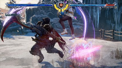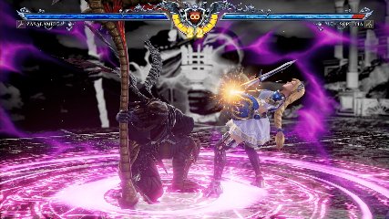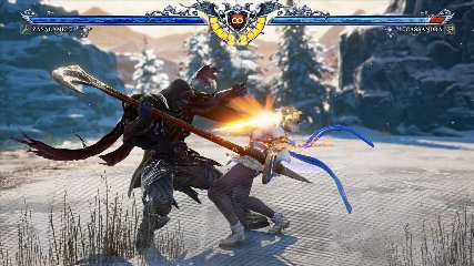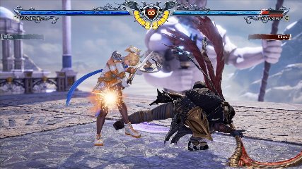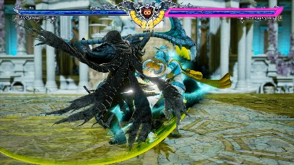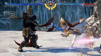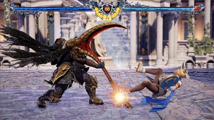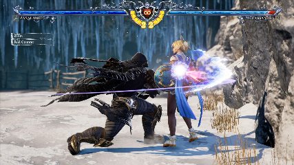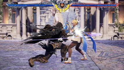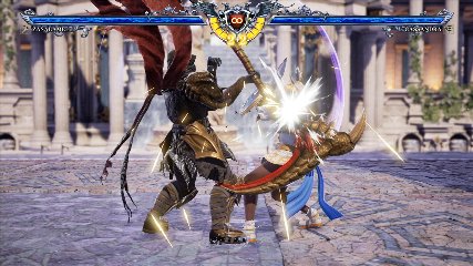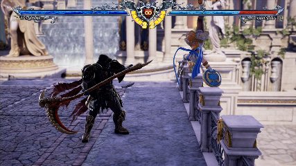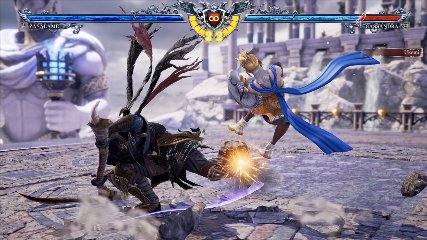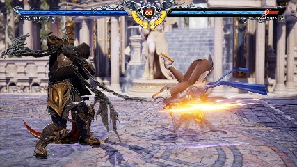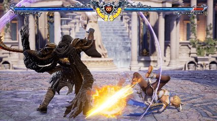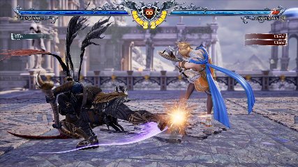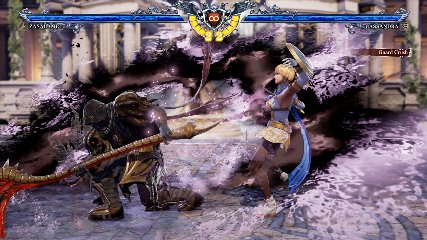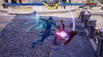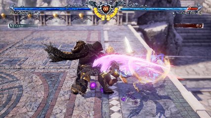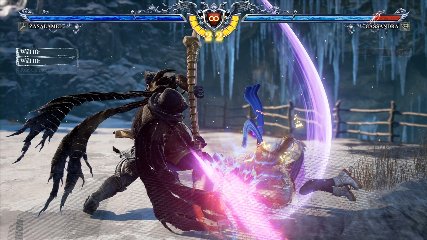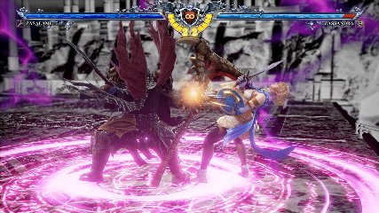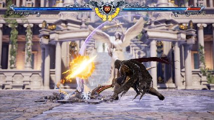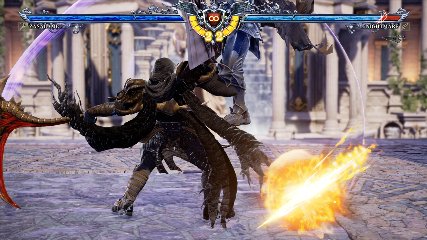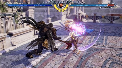 ちなみに背の高い相手キャラ限定で、背向けK > 背向けBBの高ダメージレシピが可能。ただししゃがみヒットに対しても成立するキャラはアスタロス、ナイトメア、ヴォルド(正面)、ザサラメールとかなり限られているため汎用性は低い。