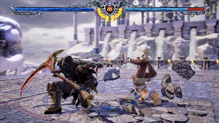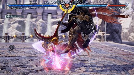 ザサラメールの背向けからは強力な二択が可能。中段択グラップル・オブ・ネルガル(背向けBB/中特下)は、呪詛なしでダメージ90を超える高ダメージコンボの始動技となっている。