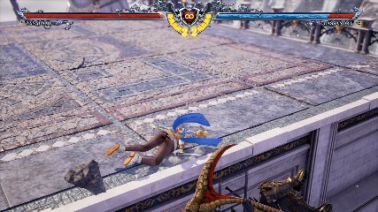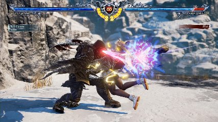 ガードクラッシュで姿勢が崩れた相手にリーサルヒットするジャッジ・オブ・エア(ホールド)(