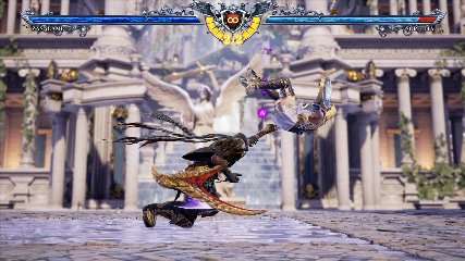 コンボは背向けB+Kを微ホールドして、浮いた相手が接地するタイミングに合わせるとダメージアップ。さらに受身不可となるため起き攻めでさらに択をかけることができる。ホールドしない場合はダメージが5下がるかわりにソウルチャージの消耗時間を1秒程温存できる。