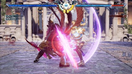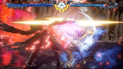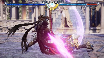 ヴォイド・ノヴァ(SC中A+B/特中*6)は相手を問答無用で引き寄せて、ヒット or ガードにかかわらずフレーム有利の状況が作れる。相手がコズミック・エンブリオを警戒して横移動する場合に、強制的に接近戦二択の状況へ仕切り直しできる。