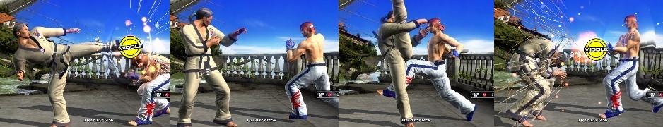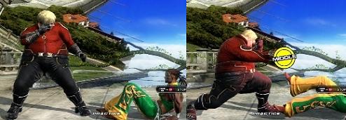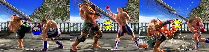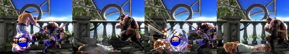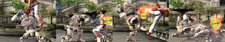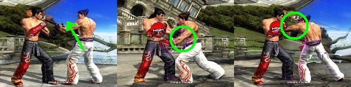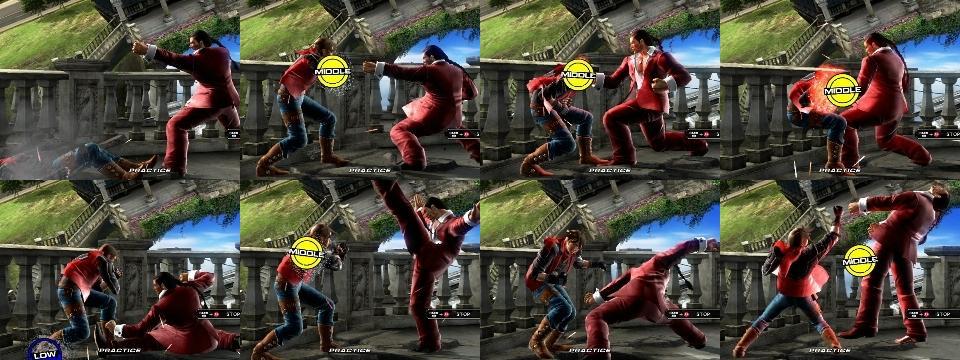 /下)はガード硬直-16F。通常ならガードされて浮き確定、体力の四割を失うのだが、スティーブはしゃがみから発生16Fの浮かせ技を持たない。反撃はイーグルクロウ(立ち途中