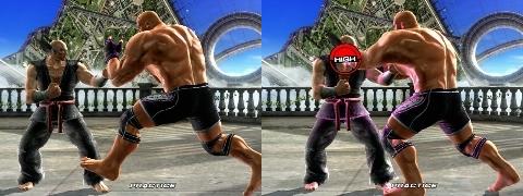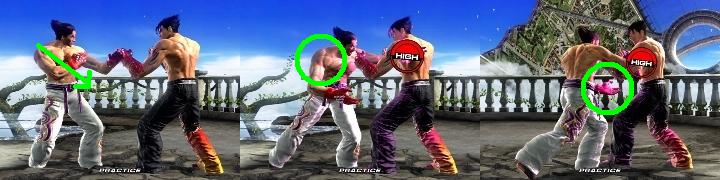 構えが連係の基点になる場合は、苦手な攻撃方向を探そう。スティーブのピーカブースタイルからの攻撃は右に弱いものが多いため左横移動(+しゃがみ)が有効。構えた瞬間はリーチに乏しいので、読めていればバックステップでもイケる。