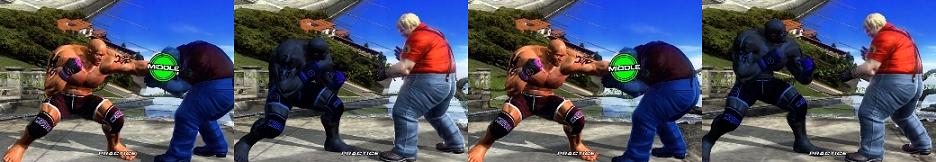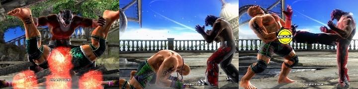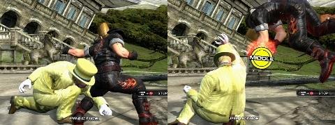 微妙な前進をもつ技で壁やられ受身に起き攻めすると、特定条件でめくりが成立する。写真は一八、壁コンボを魔神連震殴打(