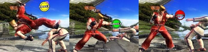 要素の入力と上段判定が競合して、自動的にしゃがみ途中攻撃になる)。
