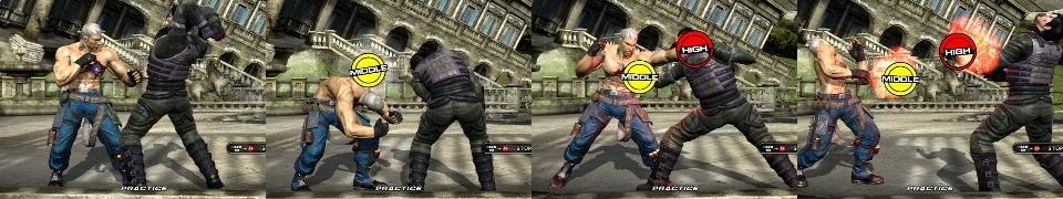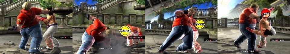 /下下下)が当たり続ける。パルスナックルの発生が12F、ヒットで+9F有利のため、通常の振り向き動作では正面やられに戻せないのが原因。振り向き攻撃ではカウンターを取られるので、投げで正面やられに戻そう。