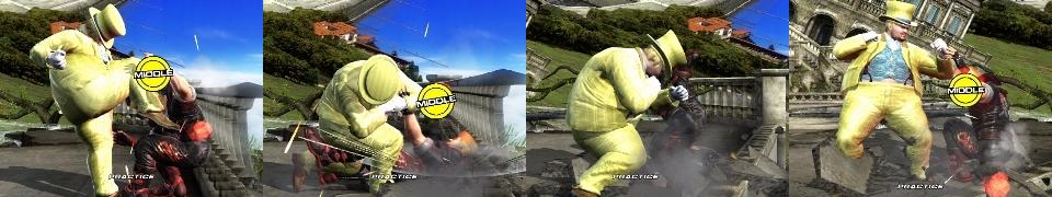 遠距離を壁やられで運んだ場合、通常はステップインから壁やられ中コンボ=壁強からのバウンド後コンボを入れるのだが、距離がありすぎて通常の壁コンボが不可能な場合は直接補正切りのタイミングに技を合わせることでダメージを取ることができる。ただし補正切りのタイミングがわかりにくい。相手の壁やられを見てタイミングをはかればいいじゃない。