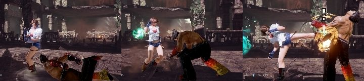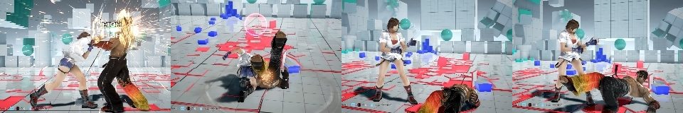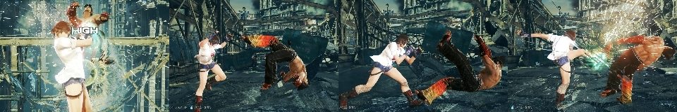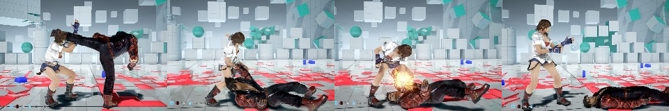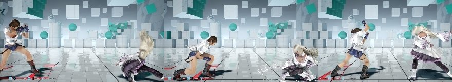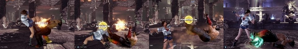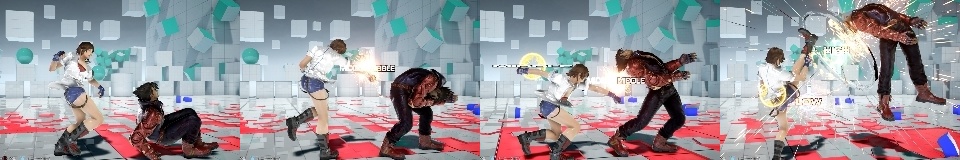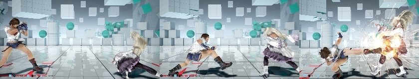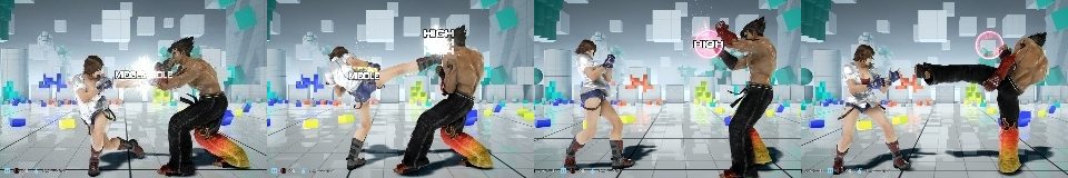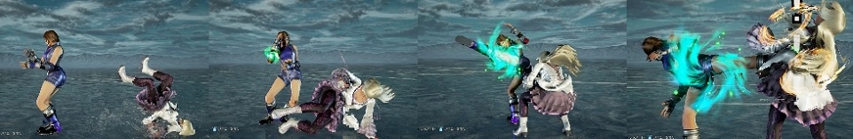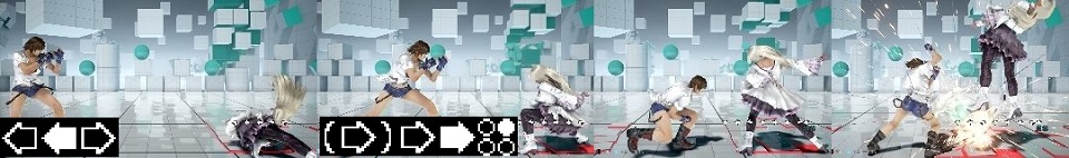 /中中)は横転には回避されるが、起き上がり攻撃をつぶしつつ、後方起き上がりに重ねることができる。鏡乃は横転にヒットし、牽制キックにはつぶされるが、中下起き蹴りには発生勝ちできる。