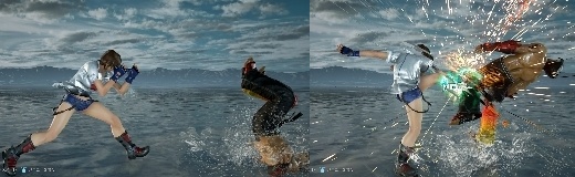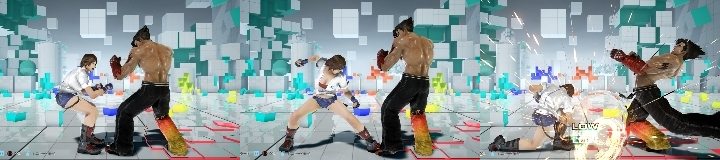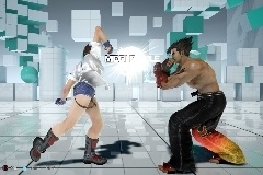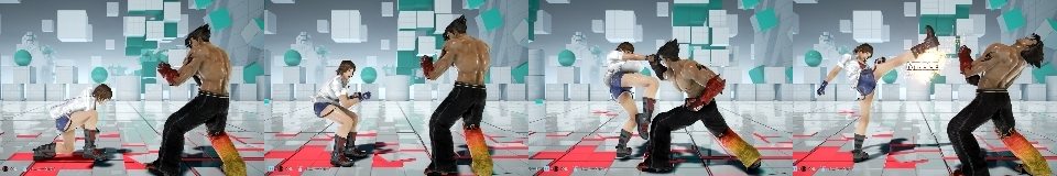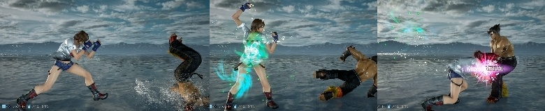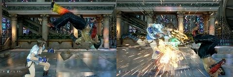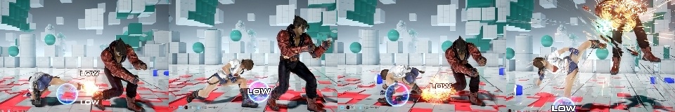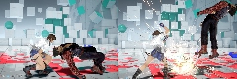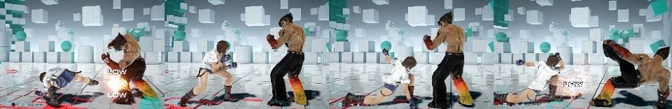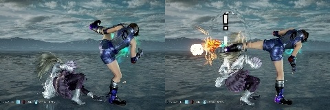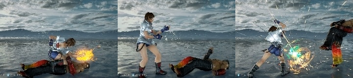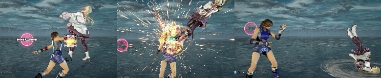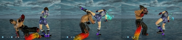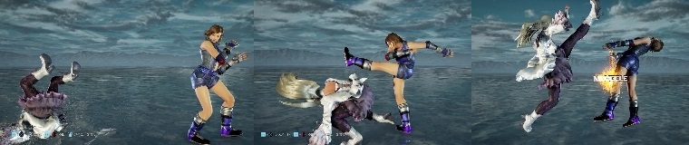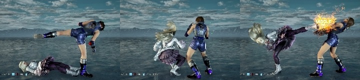 /中)の起き上がりが選択できず(起き上がり下段キックに化ける)、飛鳥側は-1~-3F不利(双方先行入力できないため前後する)の特殊な状況になる。