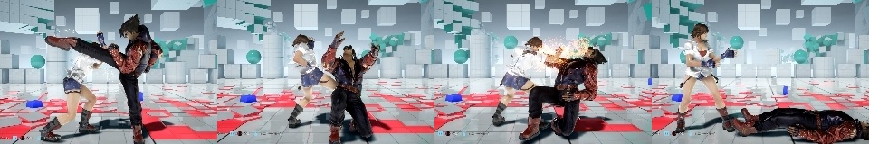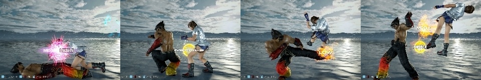 飛鳥の場合、ギミックを利用したコンボはその後のダメージ補正が大きく、レイジドライブがからまないかぎり飛鳥側のメリットはあまりない。相手がステージギミックを利用できないように、先にギミックを消費する目的で割ることになる。