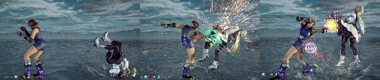 /中上,打撃投げ)2段目ヒット後は、打撃投げで相手がダウンする。このとき、相手側は軸ずれでスプリングキック(ダウン中