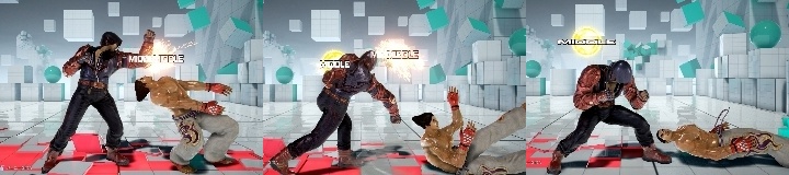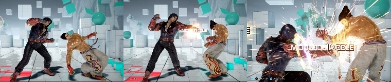 )でもほぼ同じ起き攻めが可能。こちらの方がダメージが1高く、外回し踵落としよりも仁側のフレームの有利が大きいが、後ろ回し右踵落としのコンボが難しく、仁側の硬直解除が早すぎて最速だと起き攻めのタイミングが合わない。