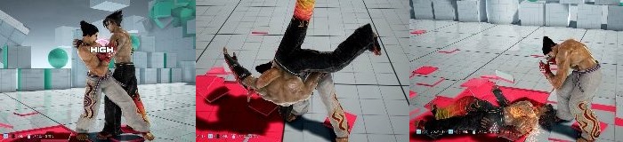 /下)の空振りに対して、ほとんどのキャラの横転~起き上がり中段キックは届かず、横転~起き上がり下段キックはガード可能。ローリスクにやり過ごしたい場合は、反時計横転~その場立ちになる。