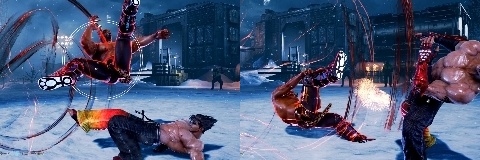 /中)をヒットさせると、一種のダウン投げ扱いとなり、相手は受身をとることができない。ただしフラッシングエルボーの発生は遅いため、起き攻めでヒットさせる機会はほぼない。
