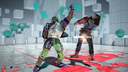 /連係)後は、反時計回り横移動で起き上がり中段攻撃を回避可。牽制キックは動かない、または反時計回り横移動で回避可。起き上がり下段攻撃は下段捌きが最大反撃。